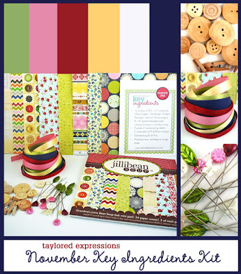 As many of you know, if you follow me, I'm a long time fan of the Taylored Expressions Key Ingredients Kits. They come full of goodies to create at least 16 cards, but I always tend to get more than that out of these amazing kits. Aside from the obvious amazingly coordinated items all packed into one glorious kit, here is one of my absolute favorite reasons to become a TE KI Kit Subsriber: